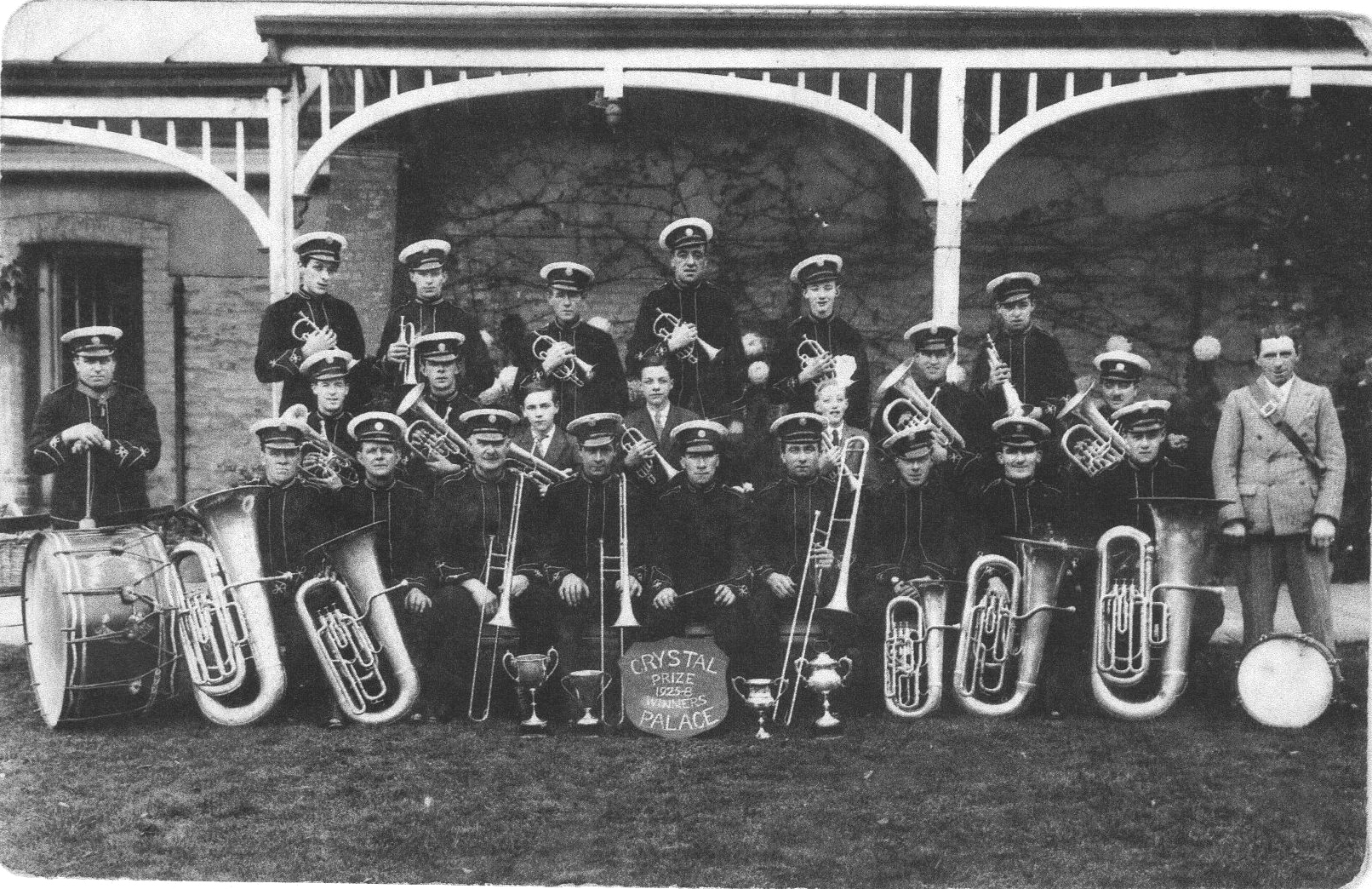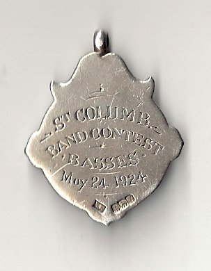 Charles Henry | 2/9/34 in Falmouth Hospital, aged 37 of myocardial degeneration, chronic bronchitis and emphysema. Was then labourer of 1 Basset St. Informant Lily Knuckey?? sister 8 Clifton Place Falmouth. | May have been dock labourer. May have been invalided out of navy 1st war and may have sold tea. Played tuba or euphonium, perhaps in Salvation Army and other bands Photos: ch in band Cf Falmouth band 1930s D136 Clive holds original of a silver medal awarded to C Eustice for the St Columb Band Contest Basses May 24thy 1924 - photo front and back |